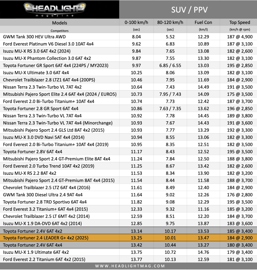 Top Speed 184 km/h @ 2,900 rpm (เกียร์ 6)