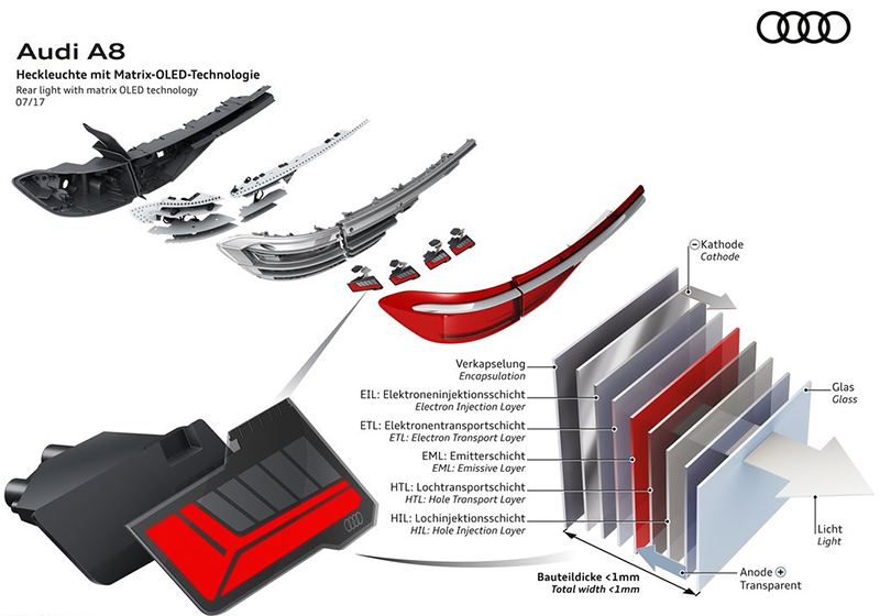 ไฟหน้าประกอบไปด้วย HD Matrix LED พร้อมด้วยเทคโนโลยีลำแสงเลเซอร์, แถบคาดด้านท้ายติดตั้งไฟ OLED ที่ช่วยสร้างมุมมองไฟท้ายแลดูคล้ายอนิเมชั่น