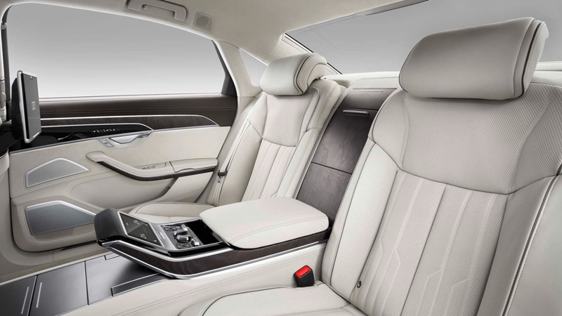 พิเศษสำหรับ Audi A8 L จะติดตั้งที่พักเท้าที่สามารถให้ความอบอุ่นและนวดอัตโนมัติสำหรับผู้โดยสารตอนหลัง, ผู้โดยสารตอนหลังสามารถปรับการตั้งค่าไฟภายในห้องโดยสารได้, ไฟส่องสว่างสำหรับอ่านหนังสือจะเป็นแบบ HD Matrix
