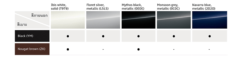สีภายในห้องโดยสาร มีให้เลือก 2 สี (ขึ้นอยู่กับสีภายนอก)