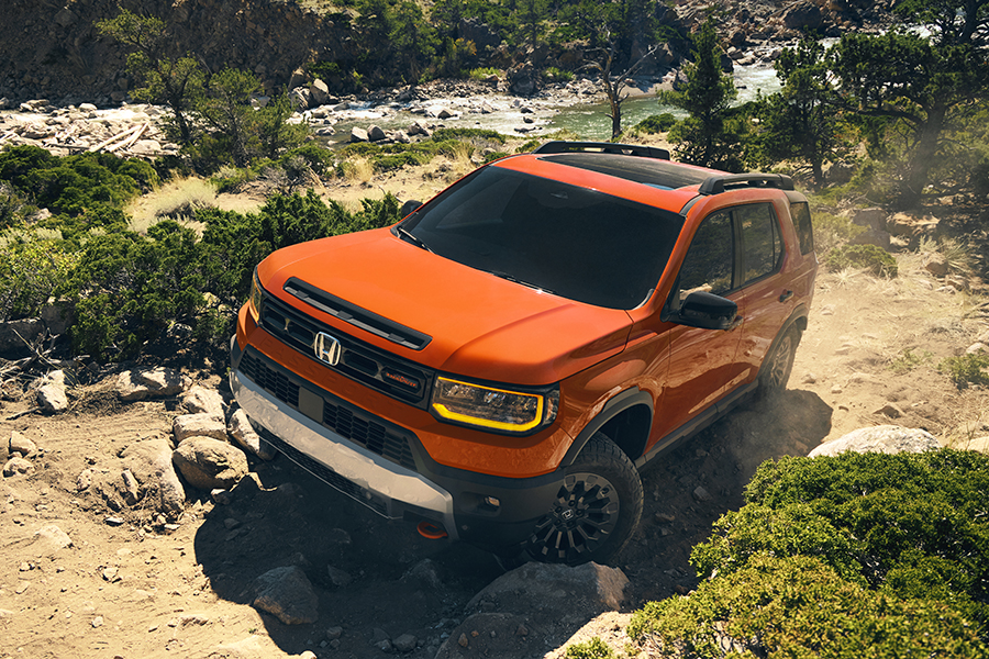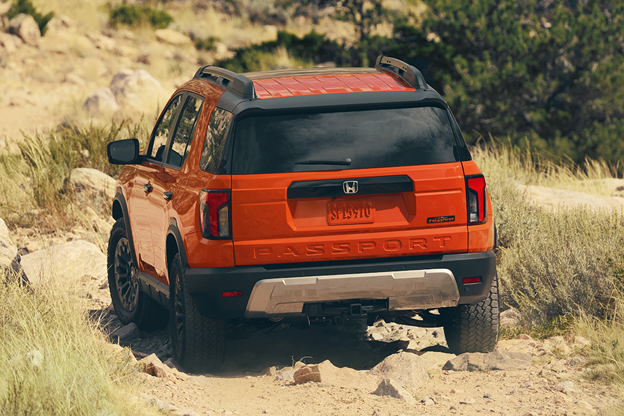 All NEW Honda Passport ได้รับการปรับโฉมใหม่ทั้งหมดด้วยแนวคิด “Born Wild” เป็นการผสมผสานทั้งรูปลักษณ์และฟังก์ชัน เพื่อให้ได้มาซึ่งรถ SUV ที่เอาใจลูกค้าผู้รักการผจญภัย Honda เลือกใช้รุ่นย่อย Trailsport เป็นตัวชูโรงในโอกาสเปิดตัวครั้งแรก โดดเด่นด้วยตัวถังภายนอกสีส้ม Sunset Orange ชุดไฟหน้าพร้อมไฟ Signature Amber DRL สีเหลือง ตัดกับชิ้นงานตกแต่งสีดำ เสริมด้วยความดุด้านข้างด้วยล้ออัลลอย ขนาด 18 นิ้ว สีเทาด้าน รัดด้วยยาง General Grabber All-terrain ขนาด 275/60R18