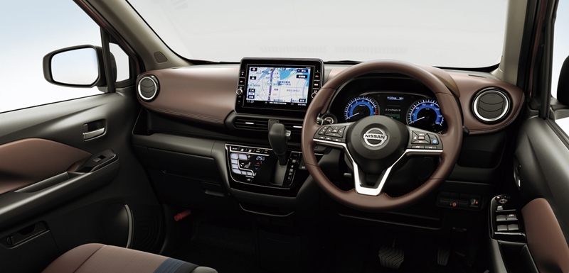 จุดขายสำคัญของ All NEW Nissan Dayz ทั้งหมดคือการออกแบบภายในห้องโดยสารที่ดูสากลแต่มีตำแหน่งอุปกรณ์ที่ดูใช้งานง่ายมาก โดยมีหน้าจอสัมผัสขนาดใหญ่อยู่ตรงกลาง ถัดมาคือแผงควบคุมเครื่องปรับอากาศอัตโนมัติที่ออกแบบให้มีอินเตอร์เฟสใหญ่โตดูน่ากด และมีข้อสังเกตอีกประการคือ NMKV พยายามใช้ชิ้นส่วนภายในร่วมกับรถยนต์ Nissan รุ่นใหม่ให้ได้มากที่สุด เพื่อช่วยควบคุมต้นทุนการผลิต