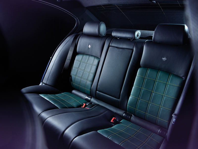 ภายในจะพบกับเบาะที่ตกแต่งใหม่ด้วยหนังสีดำส่วนตรงกลางเบาะนั้นจะเป็นหนังสีเขียว Forest Green เดินด้ายสีเหลือง