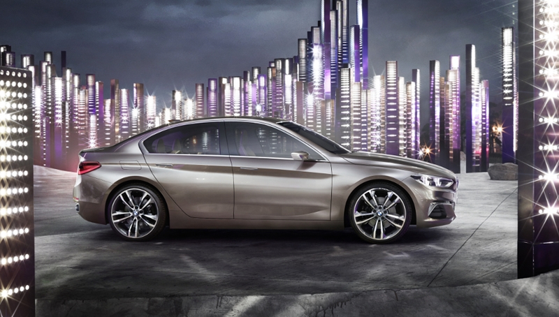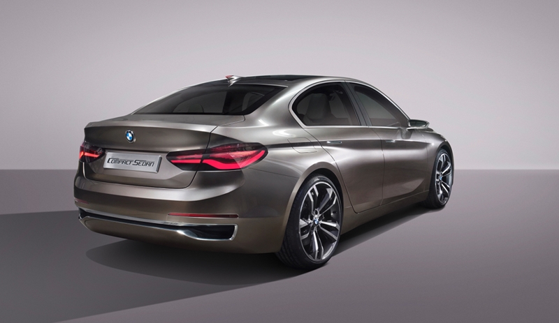 BMW Compact Sedan Concept มีจุดที่แปลกตาคือความพยายามที่จะนำสัดส่วนตัวถังซีดานรุ่นใหญ่มาย่อส่วนลงใน