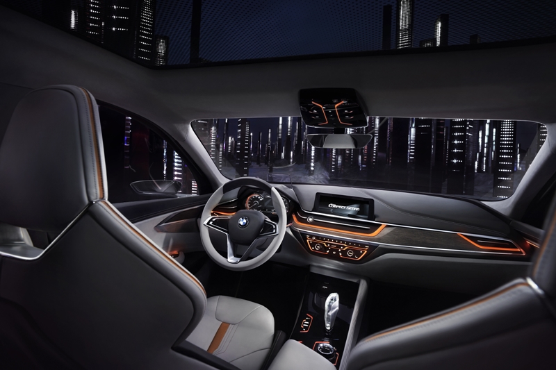 ถ้าตัดแสงสีและวัสดุบางอย่างที่ดูล้ำสมัยก็จะพบว่าภายในห้องโดยสาร BMW Compact Sedan Concept ก็แทบดู