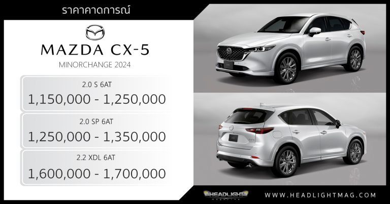 ราคาคาดการณ์ Mazda CX-5 Minorchange 2024 : 1,150,000 – 1,700,000 บาท | ถูกลง 1 – 2.5 แสนบาท