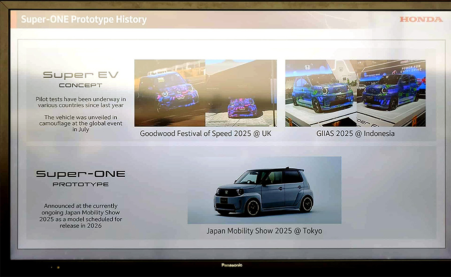 อันที่จริง Super One Prototype ถูกนำเข้ามาทดสอบในประเทศไทยได้สักพักหนึ่งแล้ว เราทราบเรื่องนี้ เพราะ มีคนแอบถ่ายภาพของตัวรถ ที่ติดสติกเกอร์พรางตัวรอบคัน ได้ เมื่อสัปดาห์ก่อน แต่การเผยโฉมบนเวทีของบูธ Honda ในงาน Japan Mobility Show เมื่อ 29 ตุลาคม 2025 ที่ผ่านมา ย่อมเป็นการยืนยันว่า คราวนี้ Honda ไม่ได้คิดกับรถคันนี้แค่เพียง ของเล่นคนรวย หากแต่ พวกเขาอยากจะนำความสนุกในการขับขี่ กลับคืนสู่รถยนต์ขนาดเล็กอีกครั้ง แม้จะต้องมาในรูปของ EV ก็ตาม
