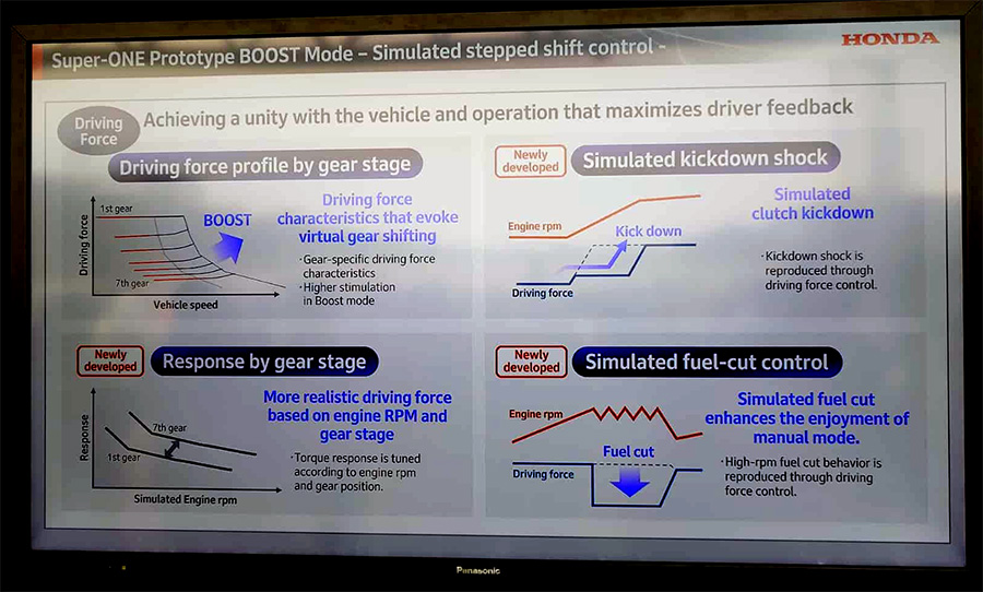 Super-ONE Prototype ใช้งานวิศวกรรมพื้นฐานน้ำหนักเบาที่พัฒนามาจากตระกูล N Series ให้การควบคุมที่คล่องตัวและขับสนุก ขณะเดียวกันยังมาพร้อมบังโคลนซุ้มล้อที่ขยายออกซ้ายขวาเพิ่มความกว้างของฐานล้อ ช่วยให้การทรงตัวมั่นคงและให้ลุคสปอร์ตทรงพลังยิ่งขึ้น นอกจากนี้ยังมาพร้อม “BOOST Mode” โหมดขับขี่พิเศษที่เพิ่มกำลังขับและปลดล็อกสมรรถนะสูงสุดของระบบขับเคลื่อน พร้อมระบบควบคุมเสียงจำลอง Active Sound Control และการจำลองการเปลี่ยนเกียร์เสมือนจริง Virtual Step-Shift Control ที่ช่วยสร้างอารมณ์และสัมผัสการขับขี่แบบรถสปอร์ตเครื่องยนต์เบนซินอย่างสมจริง