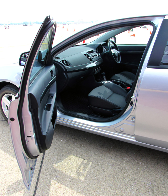 ซึ่งพึ่งจะก้าวลงมาจาก BMW Z4 แล้วเดินตรงดิ่งปรี่เข้าไป ลองขับ แลนเซอร์ใหม่กันทันที