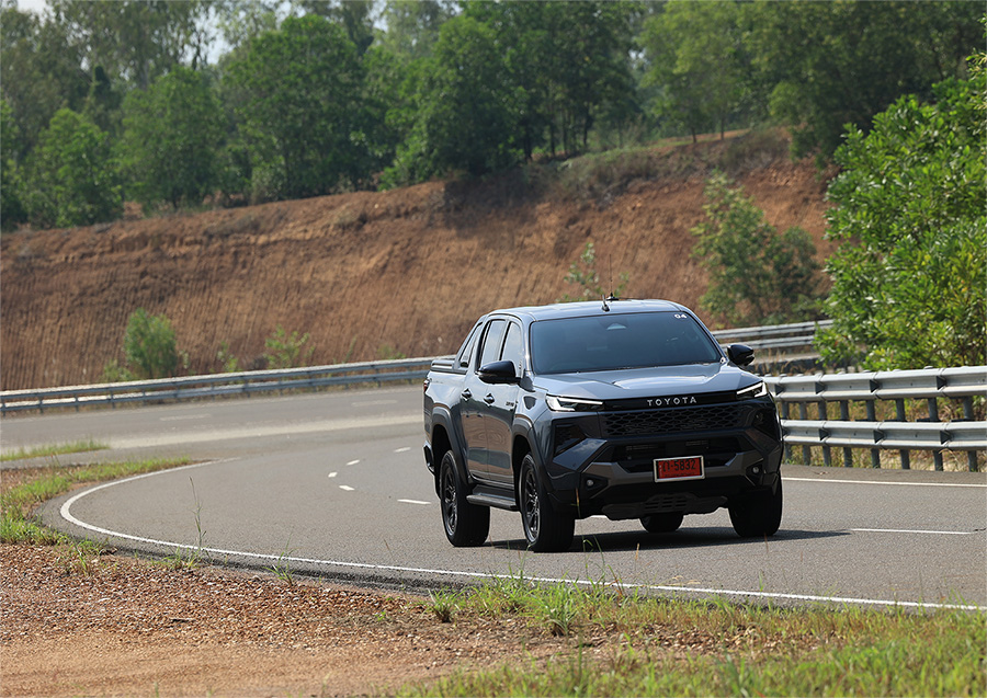 พี่ แสนคม เปศรี Deputy General Manager , Vehicle Performance Engineering No.1 ของ Toyota Motor Asia หัวหน้าทีมวิศวกร ในการปรับเซ็ตช่วงล่างของ Hilux Travo ในเวอร์ชันไทย เล่าให้ความรู้กับพวกเราว่า ความยากในประเด็นนี้ก็คือ เราจำเป็นต้องปรับปรุงให้การขับขี่ ราบเรียบ มั่นคง เสียก่อน จึงค่อยไปปรับปรุงด้าน Comfort เพราะถ้าเริ่มจากการปรับให้ตัวรถขับสบาย นุ่มนวล ขึ้นก่อน บุคลิกการทรงตัวที่ดีในย่านความเร็วสูง จะเสียไป