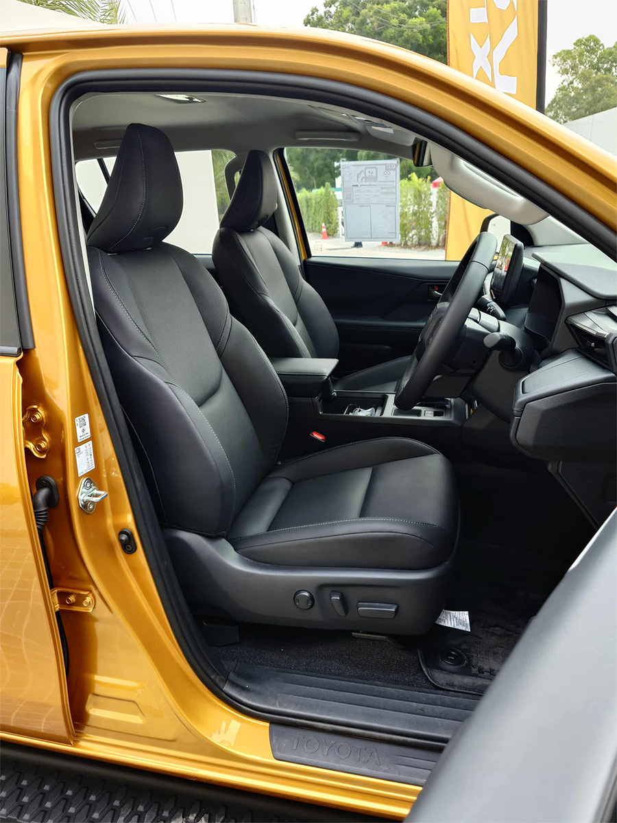พนักศีรษะ ถูกออกแบบให้โค้งเว้าล้ำมาทางด้านหน้า ในระดับเดียวกับ เบาะนั่งคู่หน้าของ Toyota รุ่นอื่นๆ ตั้งแต่ C-HR มาจนถึง Camry รุ่นปัจจุบัน แน่นอนครับ มันแอบดันกบาลหน่อยๆ แต่เหตุผลที่ต้องเป็นเช่นนี้ ก็เนื่องมาจาก Hilux Travo ต้องถูกส่วงออกไปยังตลาดยุโรปด้วย ดังนั้น ตัวรถต้องทดสอบผ่านข้อกำหนดที่เข้มงวดตามมาตรฐานการทดสอบการชน EuroNCAP ซึ่งมีประเด็นเรื่องการลดแรงเหวี่ยงที่เกิดขึ้นบริเวณคอและศีรษะ ขณะเกิดอุบัติเหตุ ทำให้จำใจต้องออกแบบ พนักศีรษะมาเป็นแบบที่เห็นอยู่นี้ ซึ่งดูแล้ว มีแนวโน้มว่า เบาะคู่หน้าชุดนี้ อาจต้องถูกนำไปใช้กับ Fortuner รุ่นต่อไปด้วยเช่นกัน แต่อาจถูกปรับปรุงเพิ่มเติมจากนี้อีกนิดหน่อย