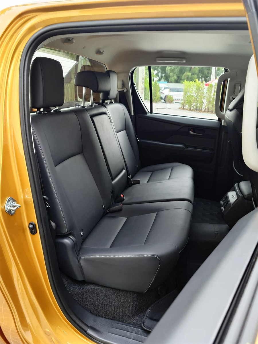 พื้นที่ห้องโดยสารด้านหลัง และการลุกเข้า-ออก ยังคงเหมือนเดิม ไม่แตกต่างจากเดิมเลย สะดวกตรงที่ยังคงมีมือจับบริเวณเสาหลังคาคู่กลาง B-Pillar มาให้ช่วยในการจับยึดและปีนขึ้นรถได้ง่ายดาย