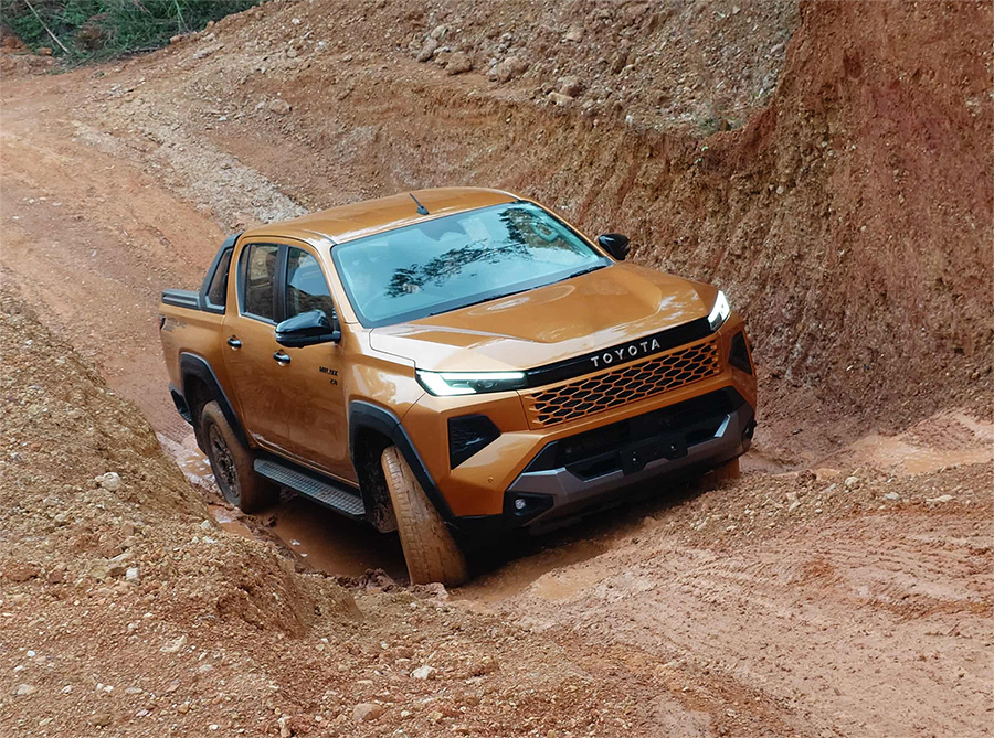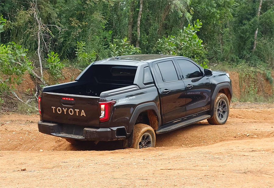 พื้นที่ซึ่งเราได้ทดลองขับ มีสภาพเส้นทางขรุขระ  ให้ทดลองกันหลายรุปแบบ ไม่ว่าจะเป็นโคลน เลน (ระดับเกือบจะเป็นหนังหมู) หลุมบ่อ เนินสูง – ต่ำ ต่างๆ ทำให้เราได้เห็นว่า ระบบขับเคลื่อน 4 ล้อ พร้อม MTS ช่วยพาให้ผู้ขับขี่ ผ่านพ้นเส้นทางที่มีอุปสรรคได้สะดวกง่ายดายขึ้นมาก  ต่อให้คุณ ไม่เคยขับรถยนต์ Off-Road มาก่อน คุณก็สามารถพา Hilux Travo ขับผ่านไปยังหลุมบ่อลึกๆระดับ ล้อหน้าหรือล้อหลัง ยกลอยสูงขึ้นมา ลึกมากๆ ระดับที่ว่า ถ้าตกลงไป ควายยังขาหัก หรือเนินเอียง ระดับที่รถเกือบจะหงายท้องอยู่แล้ว ได้อย่างสบายๆ โดยไม่มีอะไรให้กังวลเลย! ขอแค่กะระยะให้เป็น และใช้กล้องมองภาพรอบคัน PVM (Panoramic View Monitor) ทั้งด้านหน้า กับด้านหลัง เล็งดีๆ ก็พอแล้ว