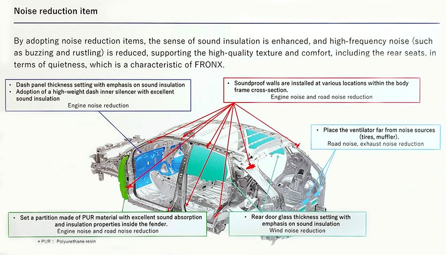 การที่ FRONX เป็นรถยนต์รุ่น Global Model ที่จะต้องถูกส่งไปทำตลาดทั่วโลก ดังนั้น การเซ็ตรถมาให้เอาใจลูกค้าส่วนใหญ่ ซึ่งต้องการความคล่องตัว ไปพร้อมกับความนุ่มสบาย และต้องใส่ เทคโนโลยีความปลอดภัยร่วมสมัยอย่าง ADAS เข้ามาด้วย จึงเป็นเป้าหมายของพวกเขาอยู่แล้ว