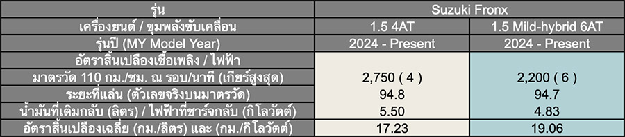 กระนั้น ถ้ามองตัวเลขในภาพรวม ตัวเลข 17..23 และ 19.05 กิโลเมตร/ลิตร ที่ออกมา ก็เท่ากับว่า FRONX ให้ความประหยัดน้ำมัน ในระดับเดียวกับ ECO Car เบนซิน 1.2 ลิตร ได้แล้ว ซึ่งก็ถือว่าเป็นเรื่องที่แอบ ดีเกินความคาดหมายไปเหมือนกัน