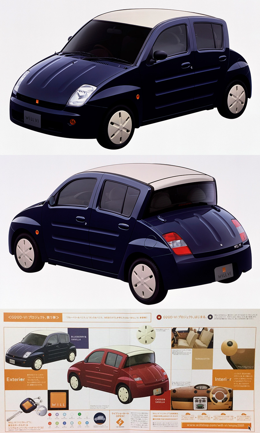 Toyota ระบุไว้ในเอกสารประชาสัมพันธ์ ว่า รูปลักษณ์ของ WiLL VC นั้น ถูกสร้างขึ้นจากแนวคิด “a sense of fun and