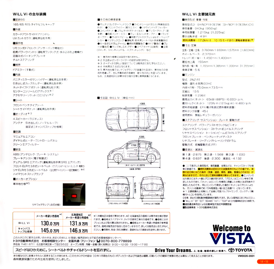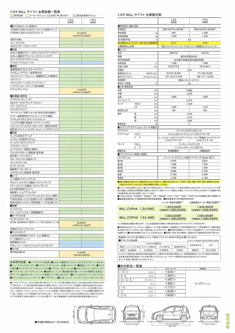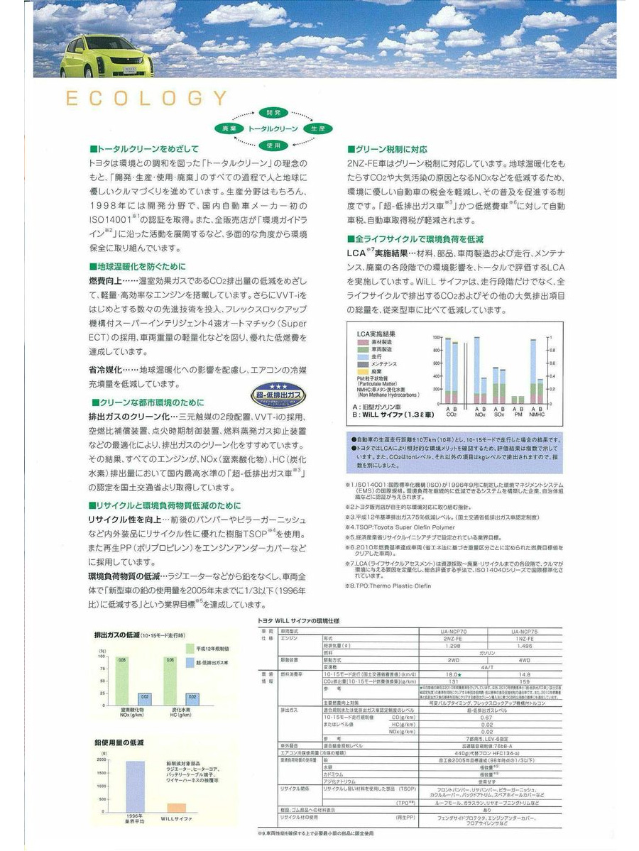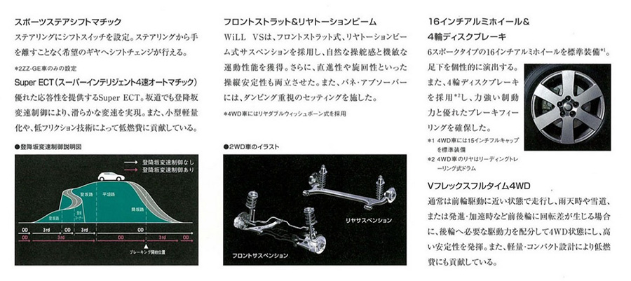 4 ธันวาคม 2002 :  WiLL VS รุ่น 1.5 Litre ถูกปรับปรุงให้มีค่าไอเสียลดลง 75% จากมาตรฐานปี 2000 ของกระทรวงที่ดิน โครงสร้างพื้นฐาน และการขนส่ง (MITI) ของรัฐบาลญี่ปุ่น ด้วยเหตุนี้ เมื่อรวมกับการผ่านมาตรฐานประสิทธิภาพการใช้เชื้อเพลิงปี 2010 ขั้นสูง จึงมีสิทธิ์ได้รับส่วนลดภาษีรถยนต์ 50% ภายใต้ระบบภาษีสีเขียว ราคายังคงไม่เปลี่ยนแปลง 1,498,000 เยน