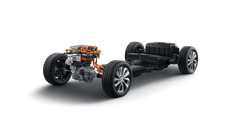 มอเตอร์ไฟฟ้า 161 แรงม้า (HP) ที่ 4,000 – 9,500 รอบ/นาที แรงบิด 221 ปอนด์ฟุต ( 300 นิวตันเมตร) ติดตั้งชุดควบคุมการส่งกำลังอยู่ในชุดเดียวกับมอเตอร์ แบตเตอรี่ Lithium-Ion กำลังประจุ 25.5 กิโลวัตต์ชั่วโมง รองรับการชาร์จประจุไฟฟ้าแบบด่วน 240 โวลต์ได้ภายใน 3.1 ชั่วโมง และรองรับการชาร์จประจุไฟฟ้า 120 โวลต์ได้ภายใน 19 ชั่วโมง รอบรับระยะทางวิ่งสูงสุดต่อการชาร์จประจุไฟฟ้าให้เต็ม 1 ครั้งถึง 143 กิโลเมตร ตามมาตรการวัดอัตราสิ้นเปลืองเชื้อเพลิง EPA สหรัฐอเมริกา ส่งกำลังโดยตรงสู่ล้อคู่หน้า จับคู่เกียร์อัตโนมัติอัตราทดล็อก (Fixed) 1 จังหวะ Direct-Drive ที่มีอัตราทดเกียร์ 1 : 2.434, อัตราทดเกียร์ถอยหลัง : 9.333, อัตราทดเฟืองท้าย : 3.83 พร้อมโหมด Normal, Econ และ Sport