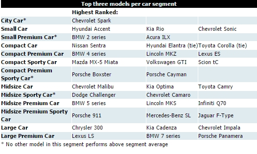 J.D. Power and Associates ได้เผยข้อมูลดัชนีสำรวจคุณภาพรถยนต์ประจำปี 2015 ล่าสุดซึ่งก็มีข้อมูลที่ทำให้พวกเรา