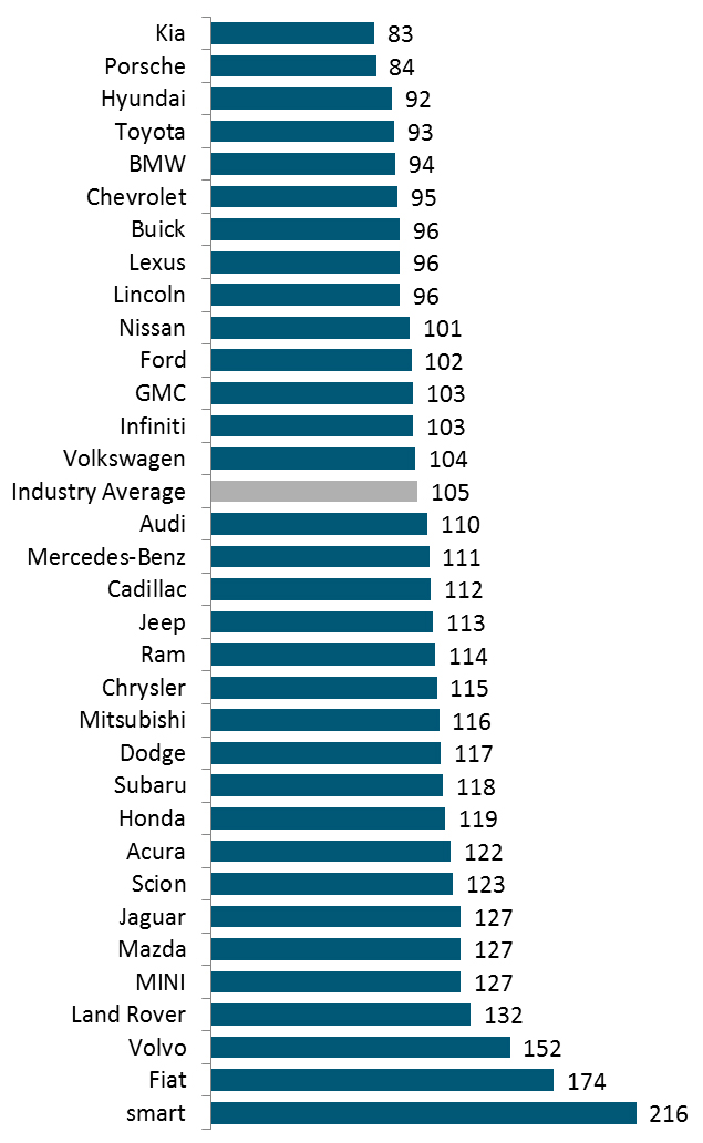 มีค่าดัชนี 92 ตามมาด้วย Toyota ที่มีค่าดัชนี 93