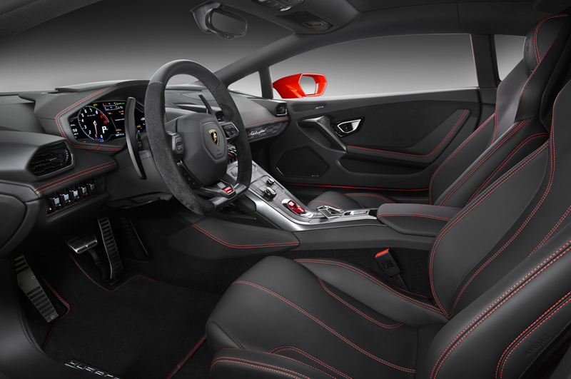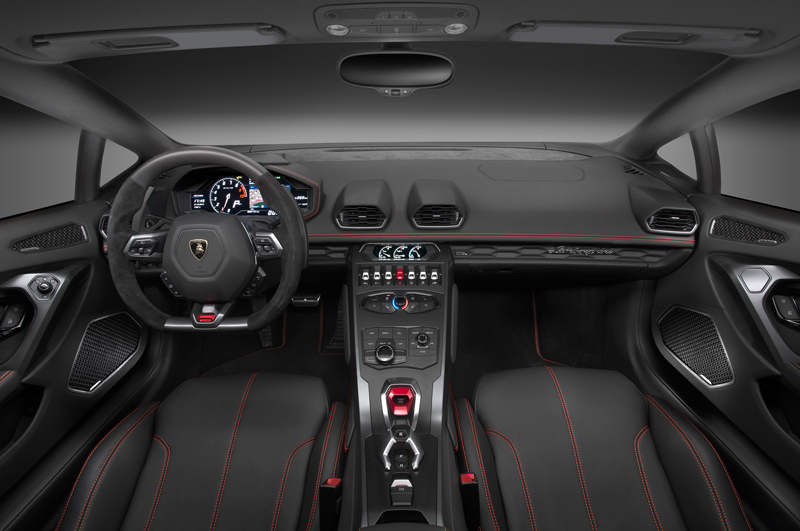 ภายในคร่าวๆนั้นดูไม่แตกต่างจาก Huracan ทั่วไปนักและปุ่มเลือก Mode การขับขี่ 3 ระดับยังคงมีมาให้เช่นเคยซึ่งมี