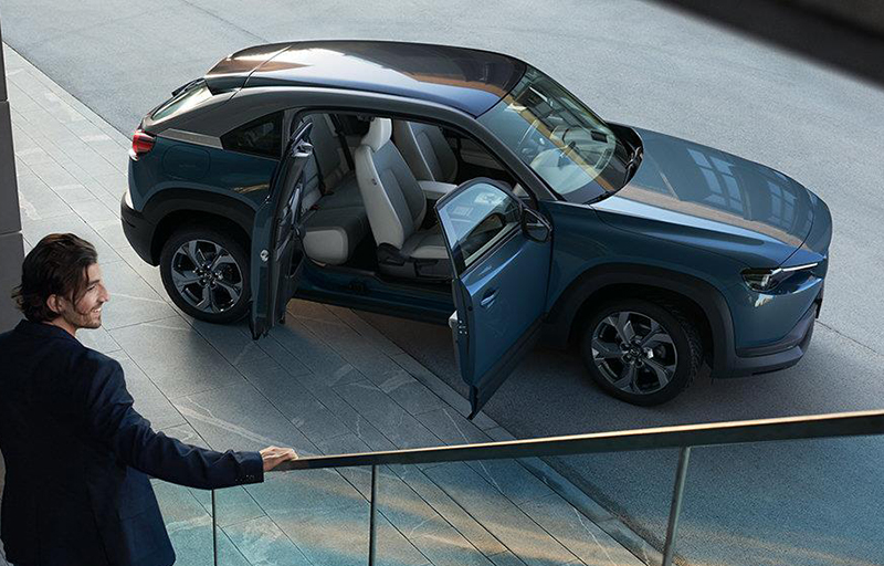 Mazda MX-30 ถือเป็น Mazda KODO Design 2nd generation รุ่นที่ 3 ที่เปิดตัวอย่างเป็นทางการ ตามหลัง Mazda 3 / Mazda CX-30 ความโดดเด่นของ Mazda MX-30 นอกจากจะเป็นรถยนต์ไฟฟ้า EV 100% แล้ว ยังมาพร้อมกับประตูแบบ Freestyle door หรือที่เรารู้จักกันในชื่อ Suicide Door ประตูตู้กับข้าว และ มีการตั้งชื่อเรียกเทคโนโลยีใหม่ ” e-SKYACTIV ” ในการสื่อสารถึงเทคโนโลยีรถยนต์ไฟฟ้า EV 100% ของ Mazda