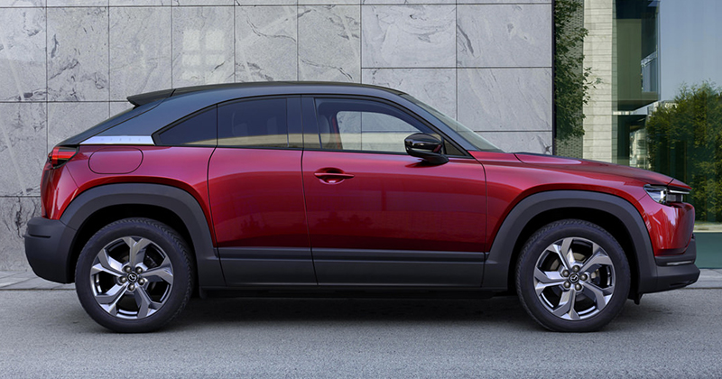 Mazda MX-30 ขับเคลื่อนด้วยมอเตอร์ไฟฟ้า e-SKYACTIV แบตเตอรี่ Lithium-ion เซลล์ Prismatic แรงดันไฟฟ้า 355V ความจุ 35.5 kWh (ยังไม่มีการเปิดเผยตัวเลขพละกำลัง และ ระยะทางสูงสุดในการวิ่งต่อการชาร์จ 1 ครั้ง
