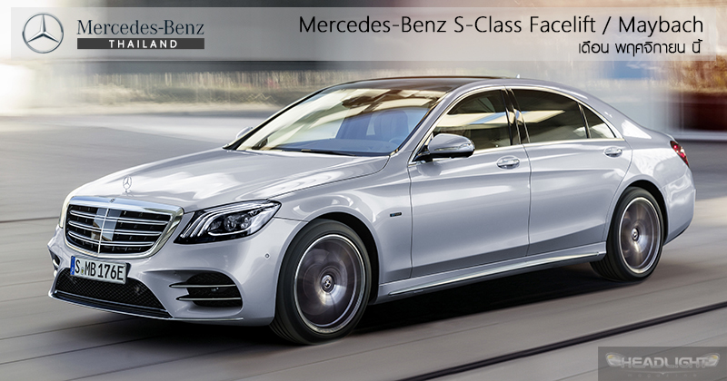 คราวนี้ Mercedes-Benz ประเทศไทย ก็มีกำหนดการเปิดตัว S-Class Facelfit เช่นเดียวกัน ภายใน เดือน พฤศจิกายนนี้ ก่อนเข้างาน Motor Expo 2017 โดยจะควงแขนมาพร้อมกับ Mercedes-Maybach Facelift