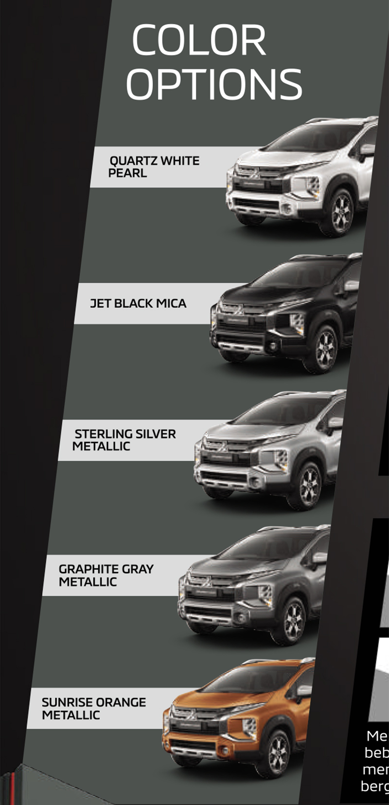 สีตัวถังภายนอกของ Mitsubishi Xpander CROSS มีให้เลือก 5 สี โดยมีสีใหม่ 2 สี