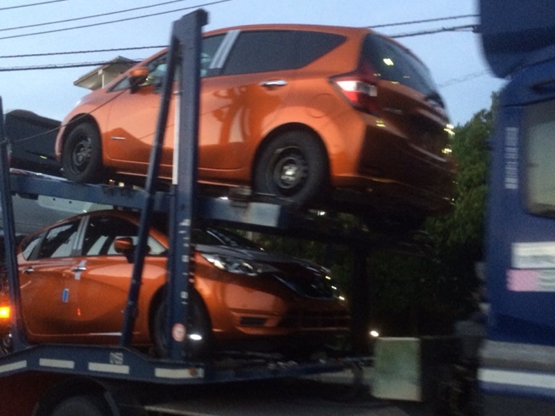 และนี่คือภาพแอบถ่าย 2017 Nissan Note Minorchange ขณะขนส่งไปยังดีลเลอร์ทั่ว