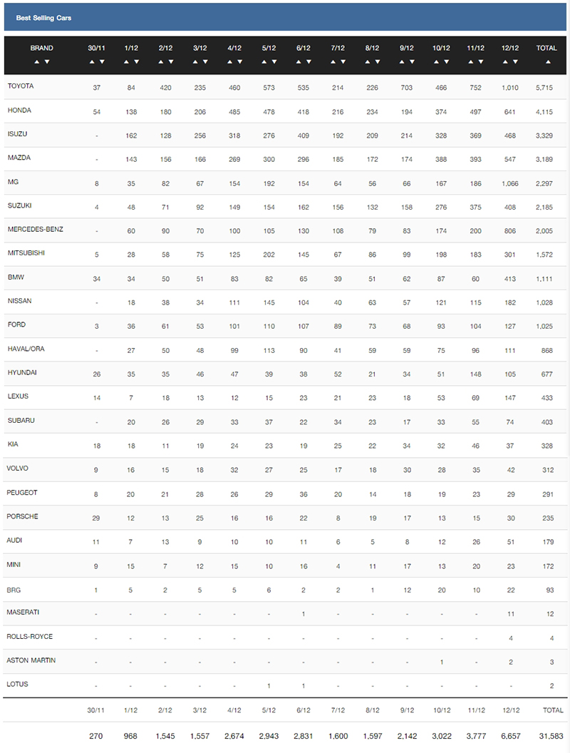 - MG : 2,297 คัน