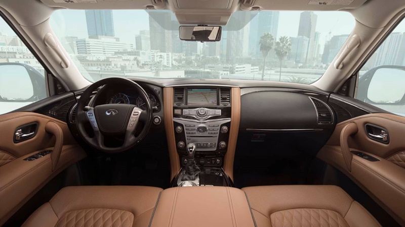 ภายในห้องโดยสารของ NEW Infiniti QX80 ยังคงรักษาจุดขายด้านความหรูหราและน่านั่งไว้เช่นเคย ที่เพิ่มเติมคือการเปลี่ยนแปลงวัสดุและสีของภายในห้องโดยสารที่ทำให้ดูมีราคามากยิ่งขึ้น เมื่อสังเกตโดยรวมจะพบว่า มันไม่มีการเปลี่ยนแปลงดีไซน์ภายในห้องโดยสารเลย นอกเสียจาก เปลี่ยนสีและวัสดุใหม่