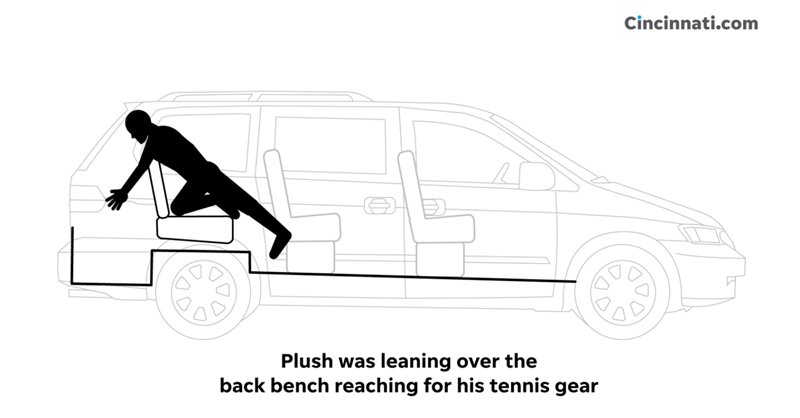เหตุการณ์นี้เกิดขึ้นในวันที่ 10 เมษายนที่ผ่านมา ณ ลานจอดรถของโรงเรียน Seven Hills School ที่ Kyle Plush วัย 16 ปี ผู้เสียชีวิตเรียนอยู่ โดยมีรายงานว่า เขาได้กลับไปหยิบไม้ตีเทนนิสที่ 2004 Honda Odyssey ของเขา โดย Plush ได้เข้าไปในรถจากเบาะแถวที่ 3 ในลักษณะที่คุกเขาบนเบาะ และเอื้อมไปหยิบของที่วางไว้บริเวณที่เก็บสัมภาระหลังเบาะ