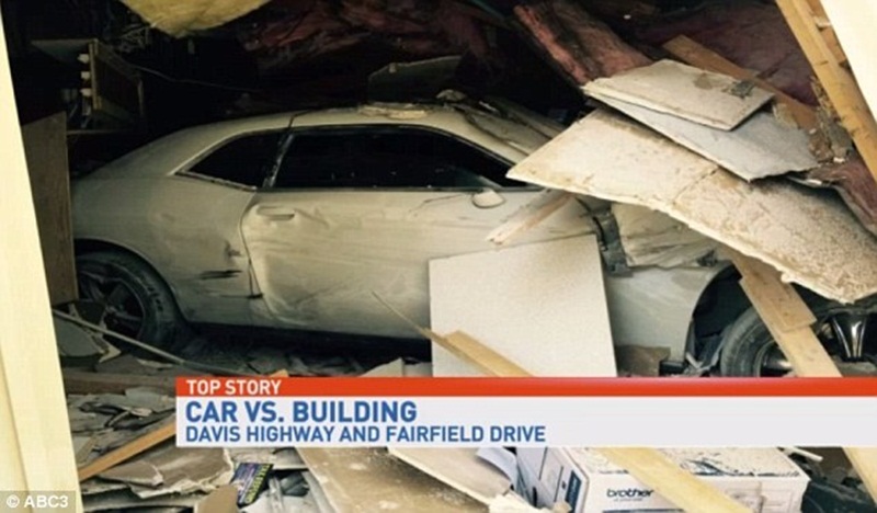 ทะลุเข้าไปในตึกที่ตั้งอยู่ระหว่าง Davis Highway และ Fairfield Drive ด้วยความเร็วที่อาจสูงถึง 140