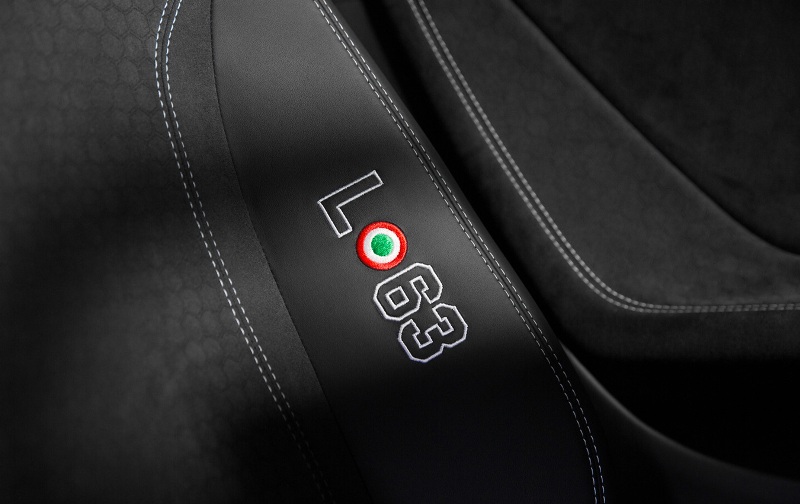 ภายในมาในโทนสีดำตกแต่งเพิ่มเติมด้วยวัสดุ Alcantara เดินด้ายด้วยสีขาวพร้อมสัญลักษณ์ L63