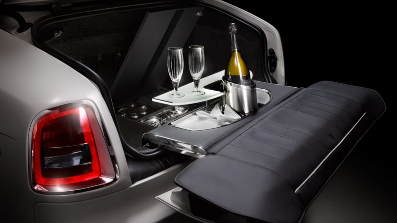 นอกจากนี้บริเวณท้ายรถยังมีตู้เย็นสำหรับเก็บแชมเปญพร้อมที่วางแก้วแบบเรืองแสงอีก 2 ใบส่วน