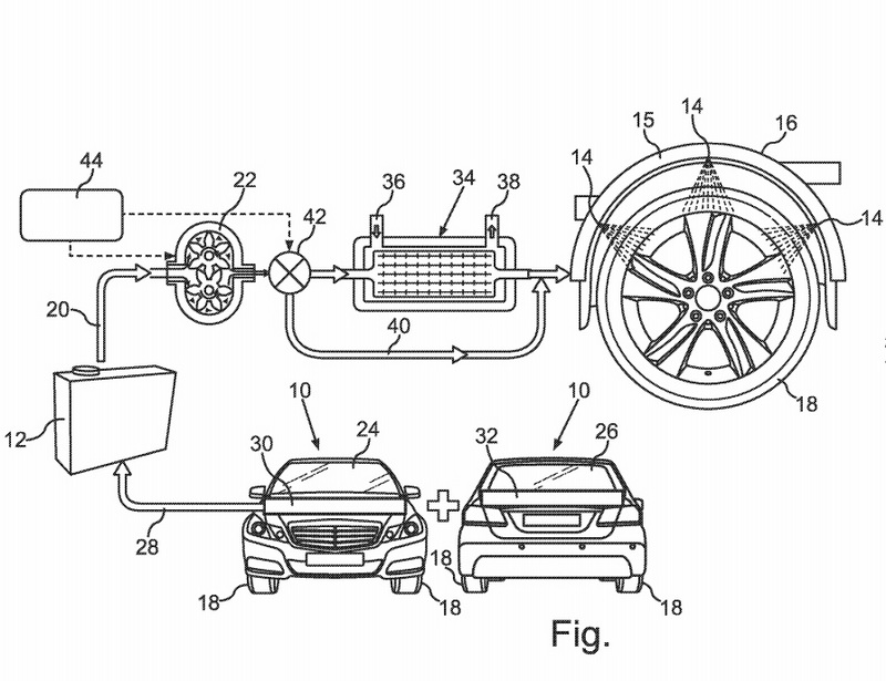 และ หิมะที่ละลาย มาพักเก็บเอาไว้ และ ระบบจะฉีดละอองน้ำไปที่ยางเมื่อเซนเซอร์พบว่า