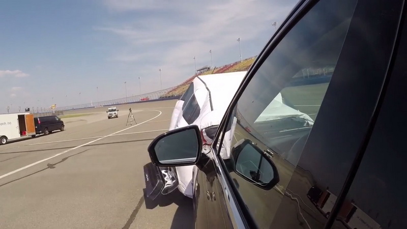 เข้าหารถยนต์จำลองที่ทำจากผ้า ซึ่งผลปรากฏว่าระบบเบรกอัตโนมัติที่เป็นระบบป้องกันการชนนั้น