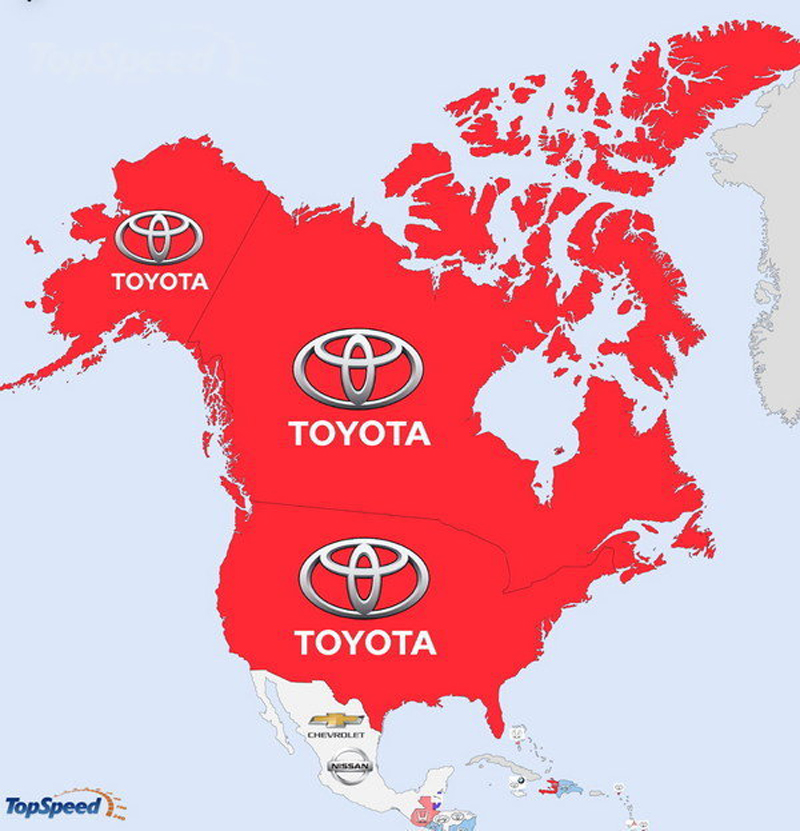 ถึงแม้ว่าภาพรวมใหญ่ของ อเมริกา จะเป็น Toyota แต่เมื่อเจาะลึกเข้ามาในแต่ละรัฐ ก็จะมี