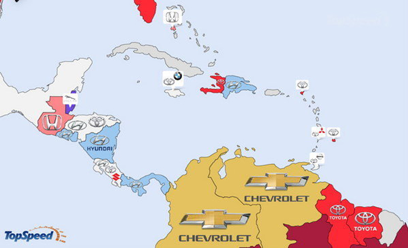 เช่น โคลัมเบีย – เวเนซูเอล่า – เอกวาดอร์ จะเป็น Chevrolet / ปานามา – Hyundai