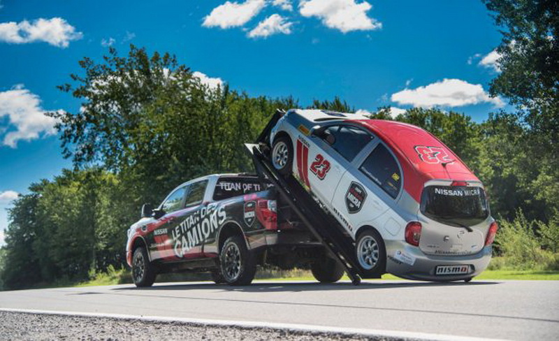 Nissan Canada ได้นำ Titan XD มาเสริมพื้นเรียบติดไฮดรอลิกไว้ใช้ขน Nissan Micra Nismo