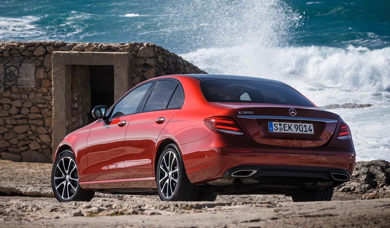 2017-Mercedes-Benz-E300-rear-three-quarter