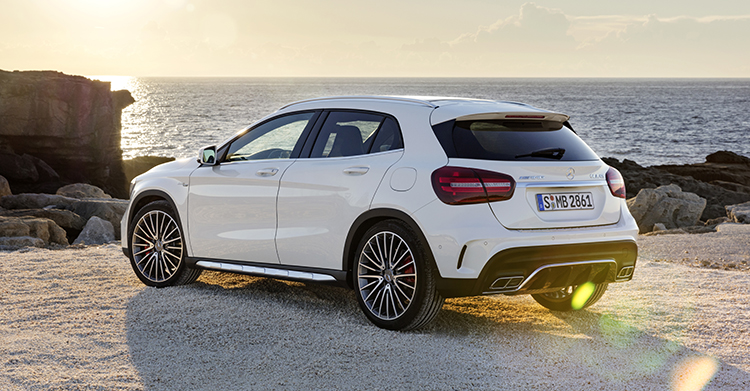 สำหรับรุ่นสมรรถนะสูงอย่าง Mercedes-AMG GLA45 มาพร้อมกับสปอยเลอร์, กระจังหน้า,