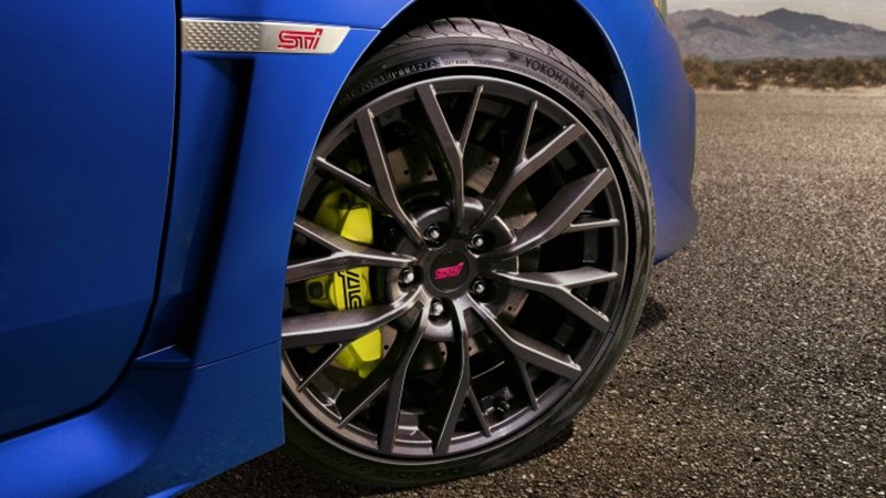 สีดำบริเวณตรงกลางของชายกันชนหน้า ในรุ่น WRX STI จะเพิ่มล้อขนาด 19 นิ้ว