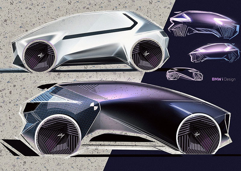 รถ BMW i Vision Circular เป็นรถยนต์ City Car มีดีไซน์แบบ 1 Box ทรงลิ่ม ที่ทำให้พื้นที่ใช้สอยภายในรถมีความกว้างขวางมากขึ้น กระจังหน้าดีไซน์ไตคู่ เป็นแผงหน้าจอ LED ซึ่ง ถูกควบรวมกับไฟหน้าแบบ LED รายละเอียดการตกแต่งของตัวรถ ถูกลดทอนให้น้อยลงที่สุด ไม่มีแม้แต่ตราที่ฝากระโปรงหน้า แต่ใช้การกดภาพลงไปบนผิวแทน ตัวถังถูกผลิตขึ้นจากวัสดุอลูมิเนียมไม่พ่นสี แต่ใช้อุณหภูมิความร้อนมาทำปฏิกิริยากับเหล็ก เพื่อลดการใช้พลังงานในการผลิตขั้นสุด