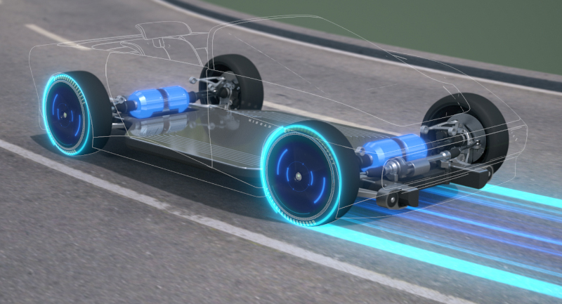ประการต่อมาคือการลดน้ำหนักส่วนต่างๆ ของตัวรถลง ทำให้การบังคับควบคุมที่ความแม่นยำ ตลอดจนมีอัตราส่วนพละกำลังต่อน้ำหนักต่ำ เปิดทางให้ขุมพลังขับเคลื่อนด้วยไฟฟ้า 100% ได้แสดงความร้ายกาจออกมาอย่างเต็มที่