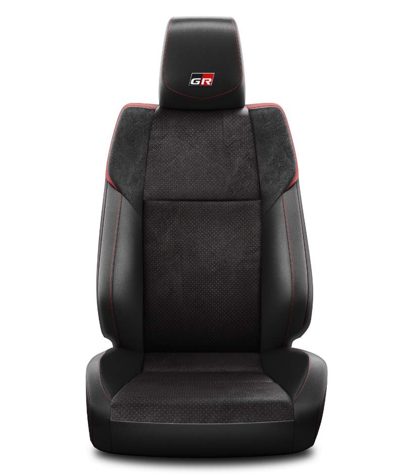 ภายในห้องโดยสาร เปลี่ยนมาใช้วัสดุหุ้มเบาะนั่งแบบหนังกลับ เดินตะเข็บด้ายสีแดง เปลี่ยนมาใช้แป้นเบรกและคันเร่งแบบอะลูมิเนียม เปลี่ยนวัสดุตกแต่งแผงแดชบอร์ดเป็นลายคาร์บอนไฟเบอร์ล้อไปกับแถบสีแดง ตลอดจนใช้สัญลักษณ์ GR Sport ประดับตามจุดต่างๆ ไม่ว่าจะเป็น ปุ่ม Push Start/Stop พรมปูพื้น และกราฟฟิกบนหน้าจอชุดมาตรวัด