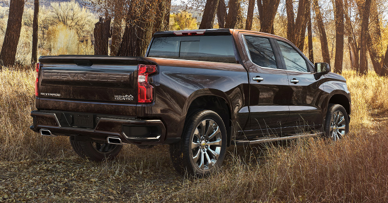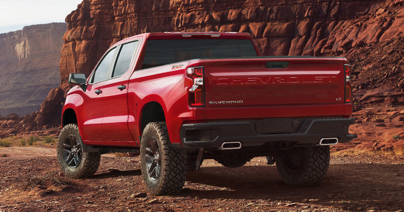Chevrolet Silverado ออกแบบมาโดยรักษา Chevy Truck DNA เอาไว้ โดยหนึ่งในนั้นคือการปั๊มตรา C H E V R O L E T แบบนูนต่ำ ลงบนฝากระบะท้ายยาวตลอดแนว ซึ่งนั่นเป็นเอกลักษณ์ของกระบะจากค่ายนี้ในยุค 1950 – 1960 แต่ใช่ว่าทั้งหมดจะมาในแนวย้อนยุค เพราะการออกแบบสมัยใหม่ก็มาด้วย ปลายท่อไอเสียทรงเหลี่ยมออก 2 ฝั่ง โดยควบรวมเข้ากับส่วนล่างของกันชนหลัง และ ยางที่มีขนาดใหญ่ที่สุดให้เลือกที่ 33 นิ้ว