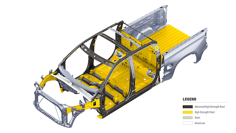 ตัวกระบะเป็นเหล็กทั้งชิ้น แต่มีน้ำหนักเบากว่าเดิม 40 กิโลกรัม เนื่องจากมีการใช้วัสดุหลายชนิดแต่แข็งแรงกว่าเดิม 10% ตัวกระบะยังมีหูยึดสำหรับยึดสัมภาระ รวมกัน 21 ตัว แบ่งเป็นแบบตายตัว 12 ตัว และแบบปรับตำแหน่งได้ 9 ตัว โดยอย่างแรกสามารถรับแรงดึงต่อตัว ได้สูงถึง 226 กิโลกรัม ก่อนที่จะเสียรูป นอกจากนั้น ฝากระบะท้ายยังเปิด – ปิดด้วยไฟฟ้า สั่งการได้จากกุญแจรีโมท หรือปุ่มกดภายในรถยนต์