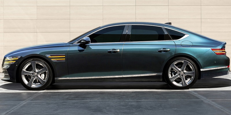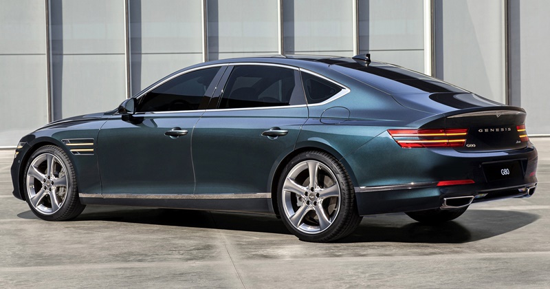 All NEW Genesis G80 ออกแบบโดยใช้ปรัชญา Athletic Elegance พร้อมคงเอกลักษณ์งานออกแบบทั้ง กระจังหน้าแบบ Crest Grille พร้อมโคมไฟสี่ดวง Quad Lamp ทั้งด้านหน้าและด้านหลัง ด้านข้างมีครีบบริเวณแก้มคู่หน้าลักษณะคล้ายโคมไฟ เสริมด้วยเส้นสายตัวถัง Parabolic Line ลากยาวตั้งแต่มุมโคมไฟหน้ายาวผ่านประตูไปจนถึงโคมไฟท้าย ส่วนล้อมีขนาด 20 นิ้ว เพิ่มความหรูด้วยการตกแต่งโครเมี่ยมรอบคัน
